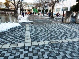 校庭に降った雪が溶け昨晩のうちにパリパリに凍り付いていました。