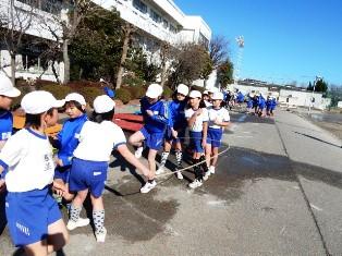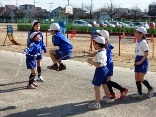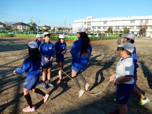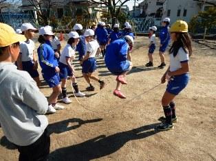 5年生は体育の授業で、縄跳びです。個人などで練習した後は