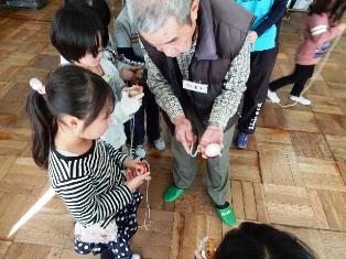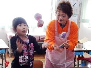 今日は1年生が「むかしのあそび」を婦人会などの地域の方々に