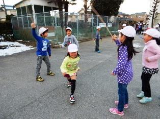 今日も寒い朝ですが、元気に体を動かす子どもたちです。