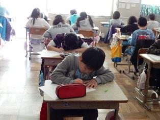 6年生は、学力テストを実施中でした。簡単ではなかったようです。