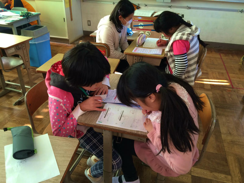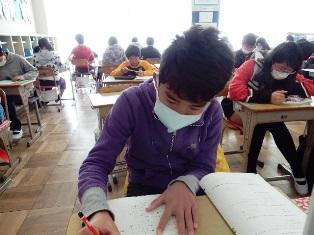 確認テストを行っています。国語と算数のテストです。