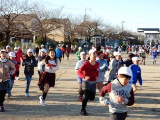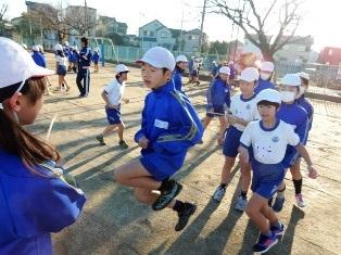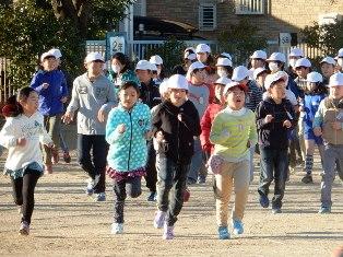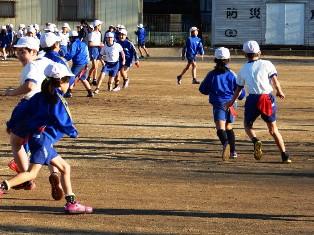 朝マラソン前からランニングで体を鍛える子どもたちです。