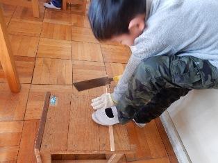 2年生は、カッターの使い方を学習しています。