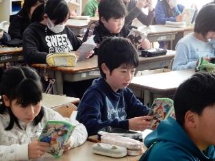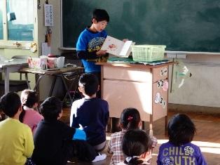 2年生の教室では、図書委員会の皆さんが読み聞かせをしています。