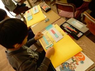 2年生は算数の授業で、テープ図を使って問題を解いています。
