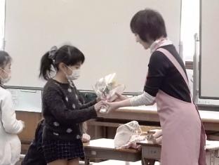 最後に、児童代表が、講師のお二人に手作りのメダルと花束を