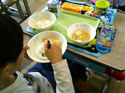 昨日より、1年生も完全給食が始まりました。みんな美味しいと大満足です。