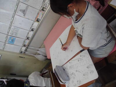 4年生が図工「ヘチマランドへようこそ」という題材で絵を描いていました。