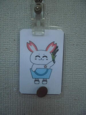 1年生が絵日記を廊下に掲示しています。しっかりと固定するために、下も留めているのですが、それに学校のキャラクター「とよっち」の絵がついたカードを使っています。