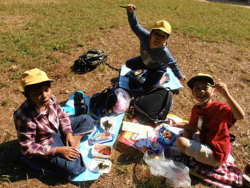 6年生が中心になって、各グループ輪になって楽しく昼食をとりました。