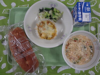 6月20日(火)本日の給食 ”春日部産トマトを使ったトマトと卵のスープで初夏を感じよう”