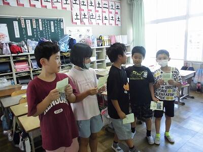 本日の友だちタイムは、室内で縦割り班ごとに遊びました。トランプをしたり、へびじゃんけんをしたり子供たちは、楽しそうです。暑さ指数が基準値を超えている場合は、校庭で遊ぶことができません。子供たちは、室内でも工夫して遊んでいました。