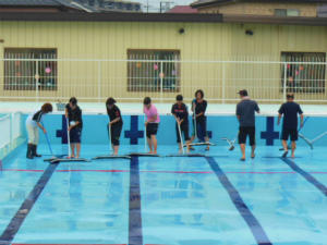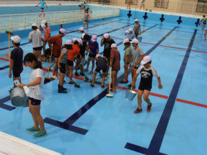 行われました。はじめはすごく汚れたプールに少し(?)戸惑って