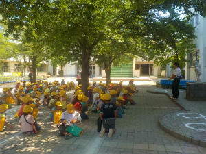 今日は休み時間を使って、予告なしの避難訓練を行いました。