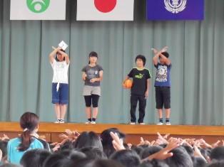 今日は、さわやかタイムの時間に、明日の陸上大会の壮行会を行いました。