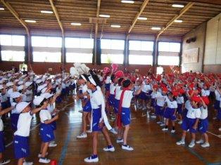 体育館の床が揺れました。「ゴーゴーゴーの歌」も体育館一杯に