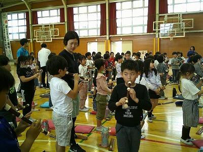 そして、シの音を使って、リコーダーを演奏しました。子供たちは、音を出すことができたのでうれしそうでした。