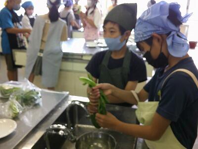 5年生が家庭科の時間に青菜を茹でました。