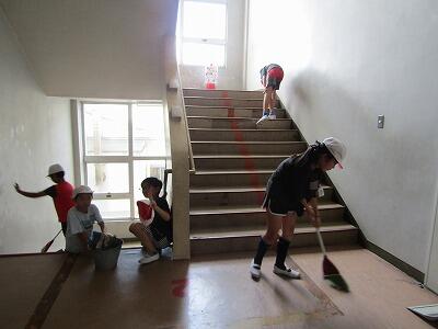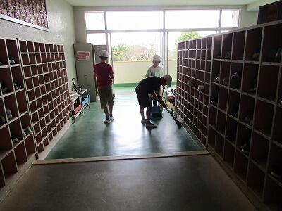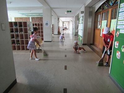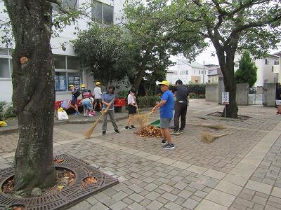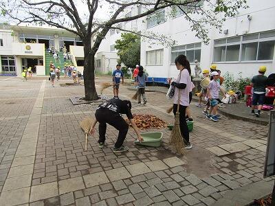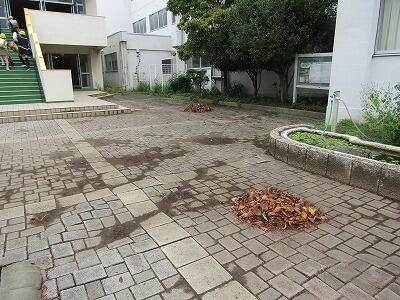 美化委員会のこどもたちが、昇降口前の落ち葉を片付けてくれました。