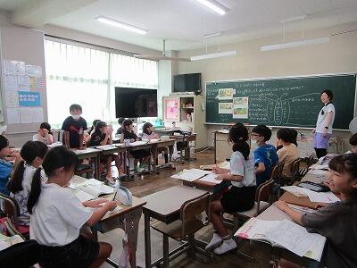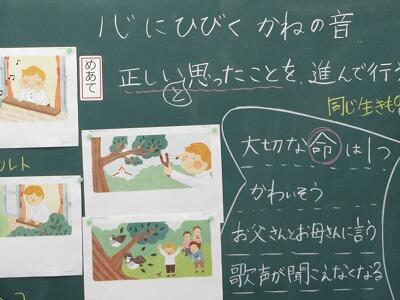 各担任が同じ道徳の題材を3週間にわたって3クラスで行う、ローテーション道徳の授業を行っています。