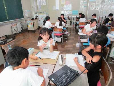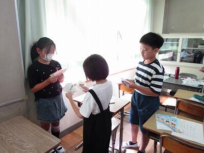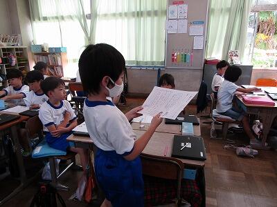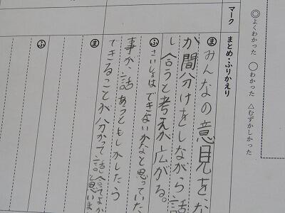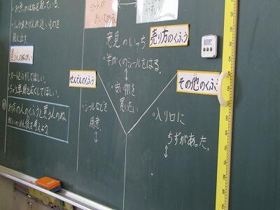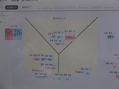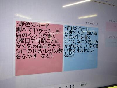 今日は、お店の人のくふうと買う人の願いについて、グループの考えをまとめ、発表しました。