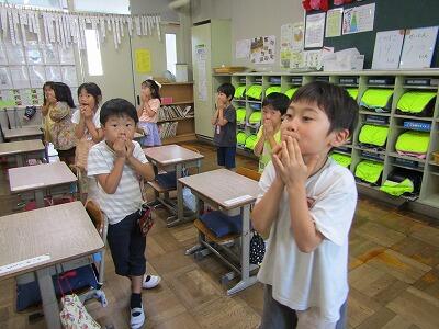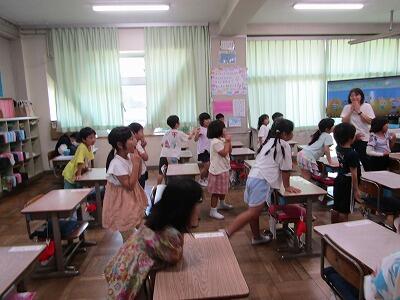 Touch your・・・を教師が言ったら、・・・の部分を押さえます。はじめにTouch your・・・がつかなければ、押さえてはいけません。