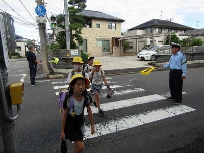 今朝は、地域の交通指導員さんがこどもたちの登校を見守ってくださいました。