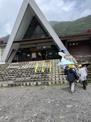 谷川ロープウェイに着きました。これからロープウェイになります。昨夜、今朝と降った雨も止みましたが、山道は危険なため、ハイキングは、取りやめます。
