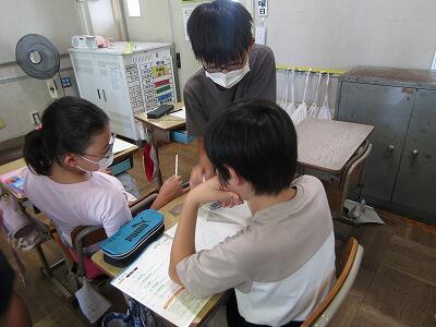 各自の学びに合わせて、少人数で学習を進めるグループもあれば、一人で課題に取り組む子もいます。