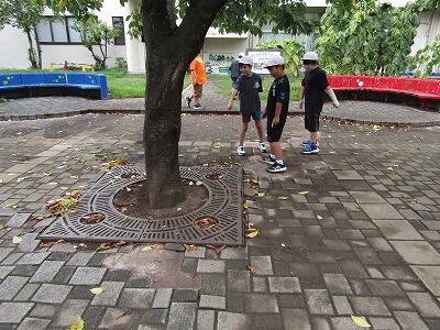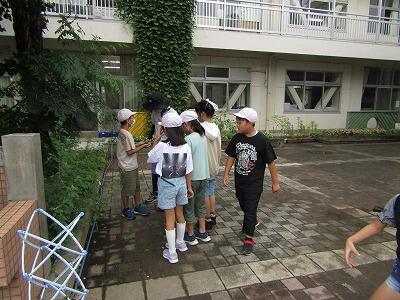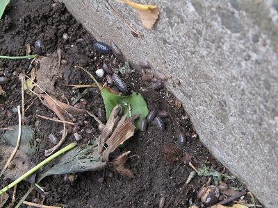 観察用のダンゴムシ集めをしました。プランターや鉢をの裏側にたくさんのダンゴムシを発見しました。