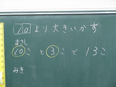 20までの数について、「10のまとまりと端数がいくつ」と見て、数え方を工夫して考えることができるようにしていきます。