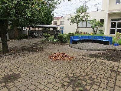 美化委員会のこどもたちが、昇降口前の落ち葉を片付けてくれました。