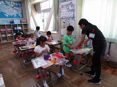 ビニール袋や色鮮やかなセロファンを使って作品作りを行っていました。