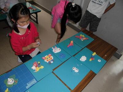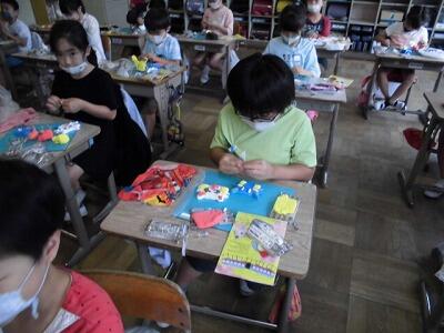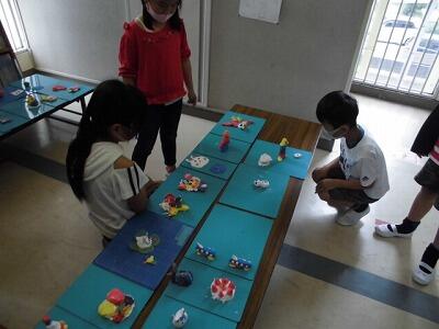 1年生は、小学校では初めてつかう粘土!いろいろな形を作ったり、動物やお菓子、お花などを造ったりしながら楽しく活動していました。