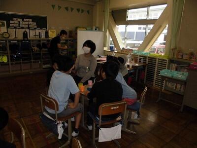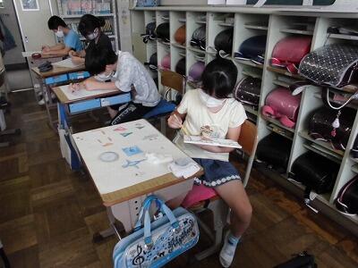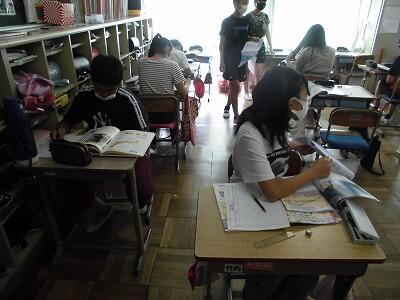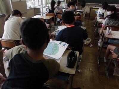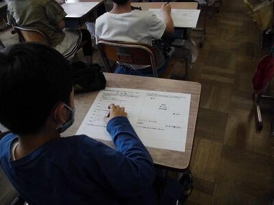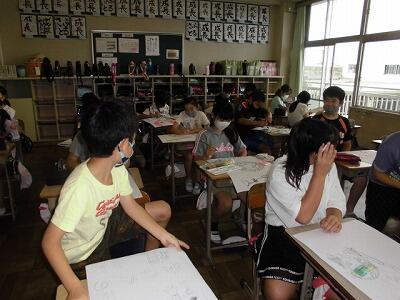 6年生は、総合的な学習の時間で「クリーン大作戦」の話し合いをおこなっていました。家庭科室、図工室、理科室など特別教室を使い、密にならないように分散しての話し合いを行い、計画している姿が見られました。