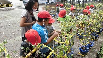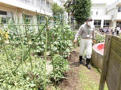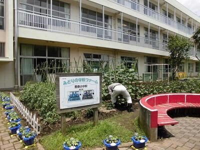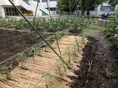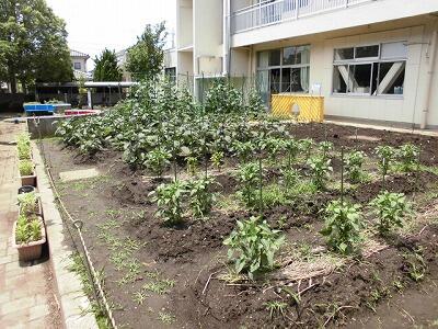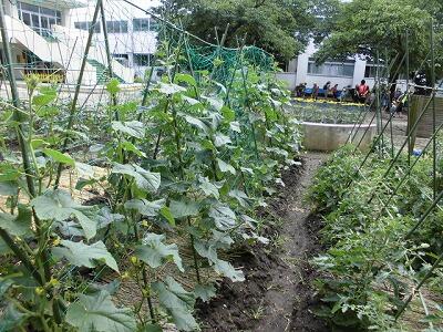 学校ファームも野菜が元気に育っています。学校応援団の地域の方が草取りや、肥料などとても気を配りながら支援してくれています。いつもありがとうございます。きゅうりやなすももうすぐ収穫になりそうです。