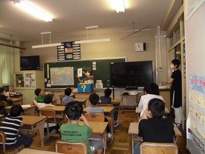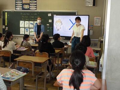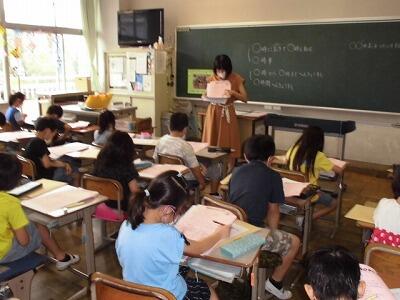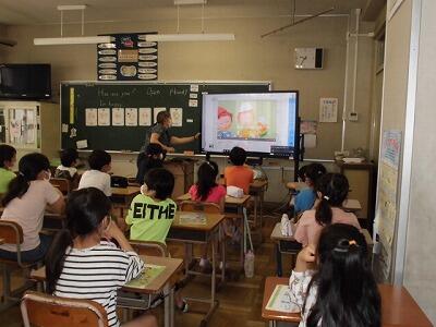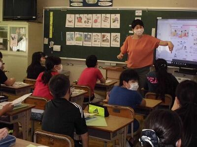 外国語活動の時間では、楽しくゲーム的な活動を多く取り入れ、楽しく外国語を学ぶ授業を展開しています。