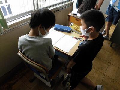 友達との関わりをうまく取り入れながら授業を展開しています。コロナ感染拡大予防のため、話し合い等はあまりできませんが、マスクをしてある一定の距離で、短い時間を意識しての友達との関わりを大切にしています。