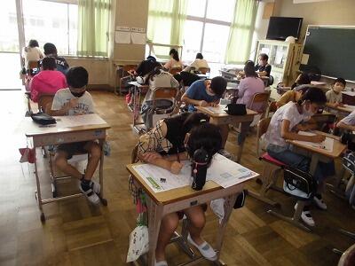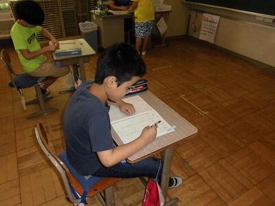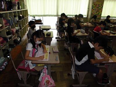 4~6年生は、埼玉県学力・学習状況調査を3時間おこないました。算数、国語、質問紙で、小学校4年生から中学3年生の6年間の、個人の伸びを調べていきます。また、この調査結果を基に、どの力を伸ばしていかなければならないのかを分析し、学校教育に生かして行くためのテストです。子ども達は土曜日にもかかわらず一生懸命がんばりました。