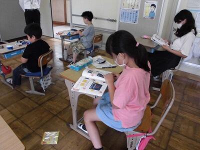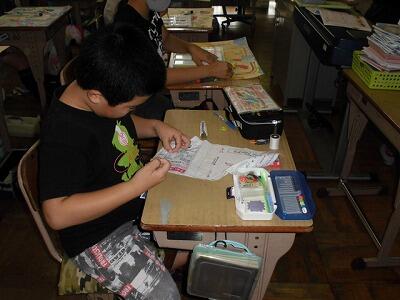 長雨が続いていますが、豊春っ子は毎日元気です。書写や英語なども頑張っています。また、今日は図工の仕上げをしているクラスも多くありました。