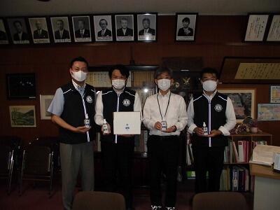 本日、春日部ライオンズクラブの岩谷 一弘様、山口 哲生様、押田 政人様の3名が、寄贈していただける消毒液をもってご来校されました。子ども達のために是非使ってもらいたいと言うことでお持ちいただきました。消毒は、朝、放課後に施設の消毒、子ども達への消毒、手洗いを学校では多く行っているため、かなりの量の消毒液を使っています。そんな中、寄贈していただけるということで大変感謝しております。大切に使わせていただきます。ありがとうございました。