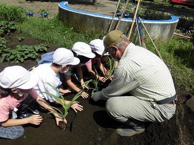 学校応援団の地域の方の指導の下、しっかり植えることができました。