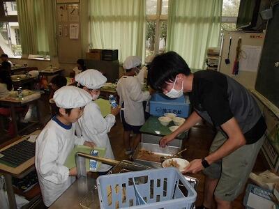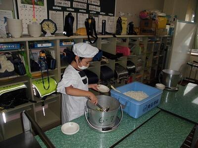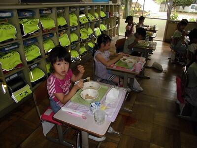 一年生の給食の時間です。みんな配膳がとても早くスムーズにできるようになりました。待ってる児童もすばらしいです。