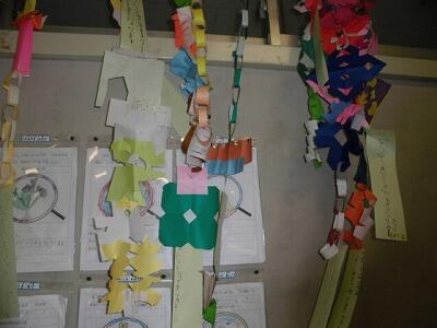 今日は七夕ですがⅠ年生が短冊に願い事を書いて飾りをつけました。
