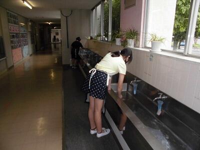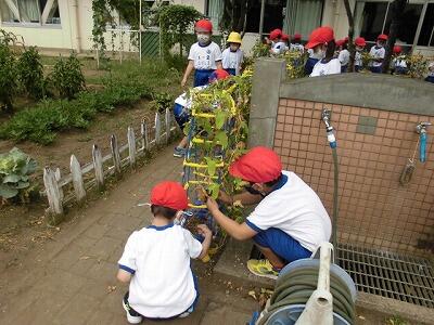 朝の水やりの様子です。678組さんが毎日の日課で行っています。