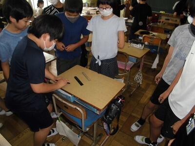 特別支援学級は、個別の課題を丁寧に1問ずつ見ています。その子にあった課題設定や、教師の示範実験等を通じて、体験的な授業にも力を入れています。