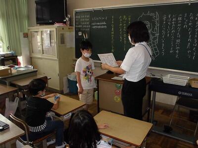 二年生の国語の授業では、役割演技をしながら音読をして、楽しみながら学習を進めています。