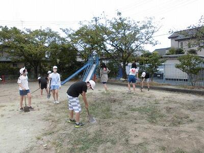 夏が終わりに近づき、学校ファームも夏野菜の収穫をして、これから冬野菜の大根やカブなどを植える準備のため畑をならしていただきました。暑い中地域の学校応援団の方が一生懸命ならす作業をしていただきました。ありがとうございました。