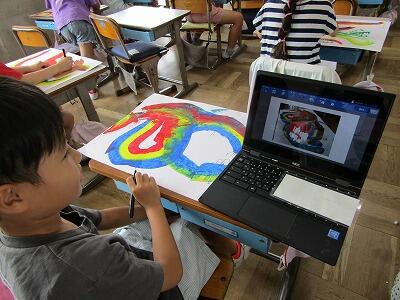 絵の具の薄め方、色の混ぜ方や重ね塗りなど、絵の具の使い方に慣れていきます。